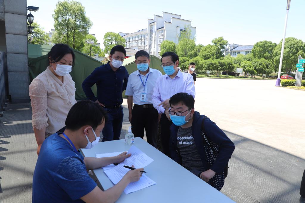 校党委书记孙晓峰、校长柳友荣、校党委副书记崔国发、副校长王延寿、纪委书记汪海等校领导头顶烈日骄阳,分别来到校园南大门、火车站等地看望慰问返校学生和一线教职员工,检查指导疫情防控工作。
