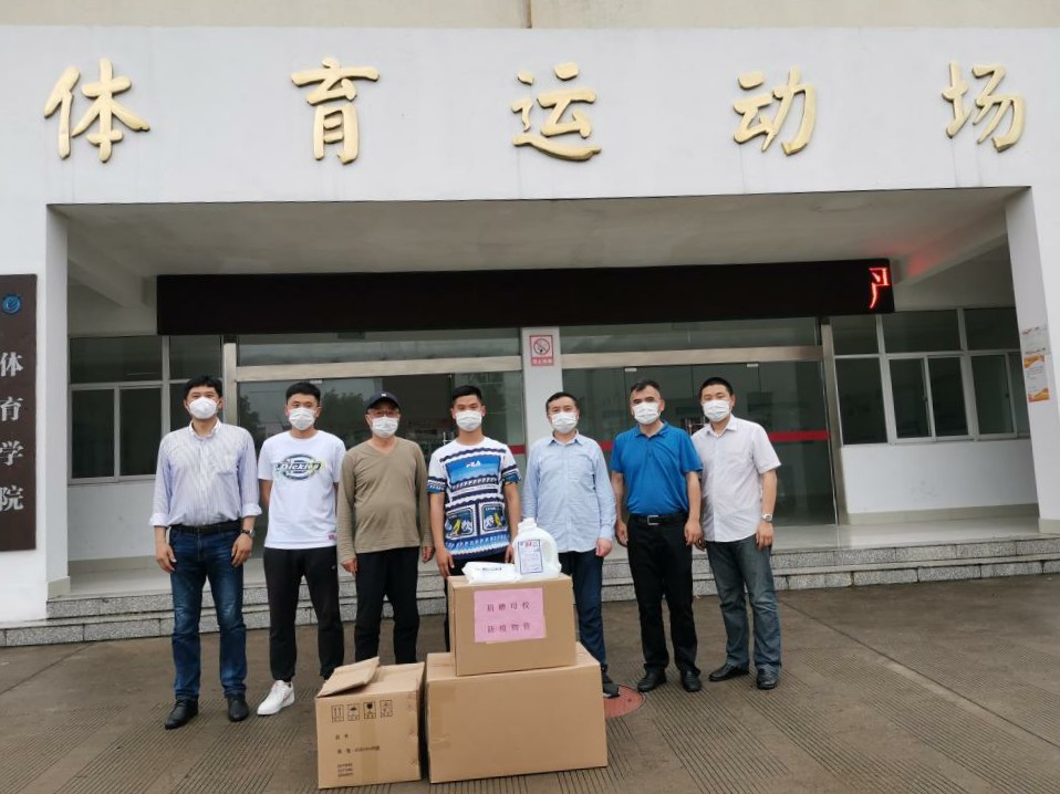 国资处、体育学院代表学校接受了物资捐赠。