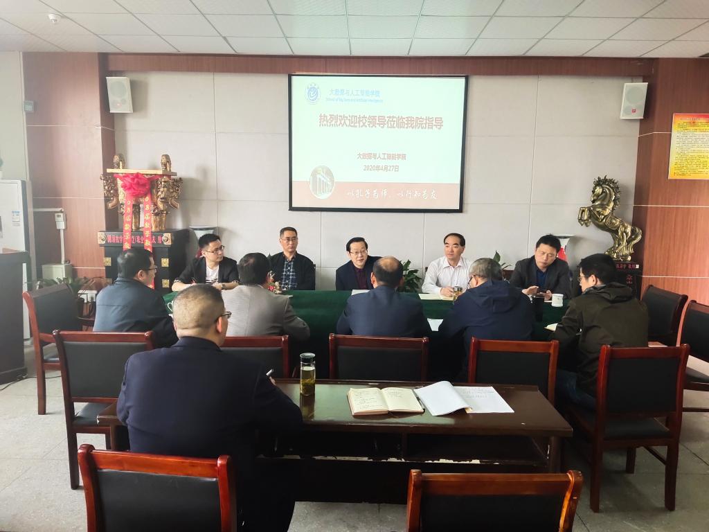 4月27日上午,校党委书记孙晓峰到大数据与人工智能学院调研指导工作,办公室、组织部、教务处、学生处等部门负责同志陪同调研。