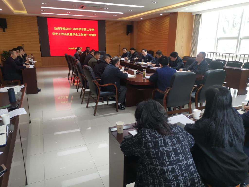 4月22日上午,世界杯官网在办公北二楼会议室召开2019-2020学年第二学期学生工作会议暨学生工作第一次例会。校党委书记孙晓峰出席会议并讲话,校党委副书记崔国发主持会议。
