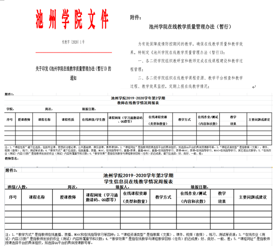 一是制定在线教学质量保障和监控制度,教师课程建设责任制,学院课程审核和平台审查制,学院教学责任人制,教学数据周报表制度,数据分析和报告制,信息反馈与应用制,责任追究制。二是构建在线教学质量保障体系,构建了教研室组织课程资源建设、学院负责课程和平台审查、学校总体引导和监控的三级责任体制。三是组建督导队伍和学生信息员队伍,学校打通两条反馈在线教学数据和信息的渠道,为各学院安排了以“校级+院级督导”组成在线教学督导组进行点对点督导,学生信息员反馈的信息与各学院的日报告数据加以比对,强化线上教学监管。四是在线教学数据反馈制度,通过在线教学数据和督导反馈,指导学院和教师不断改进在线教学方式方法,促进教学质量不断提升。五是制定在线教学课程思政实施办法,明确在线教学是课程育人的阵地,牢牢掌控在线教学的政治方向。
