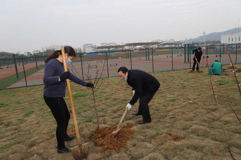 春风送暖,万物复苏。3月12日是我国第42个植树节,校领导孙晓峰、柳友荣、王延寿、汪海、阳光宁、汪贤才来到学校运动场植树点参加植树活动。