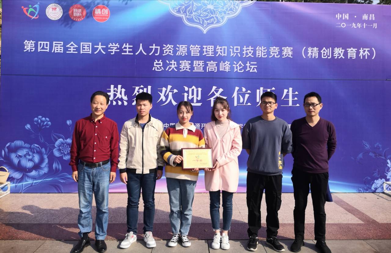 11月9至10日,第四届全国大学生人力资源管理知识技能竞赛总决赛(精创教育杯)在江西财经大学举行。世界杯官网人力资源管理专业夏紫菱、周玲、毛通通和徐士军四位同学组成的代表队荣获一等奖。