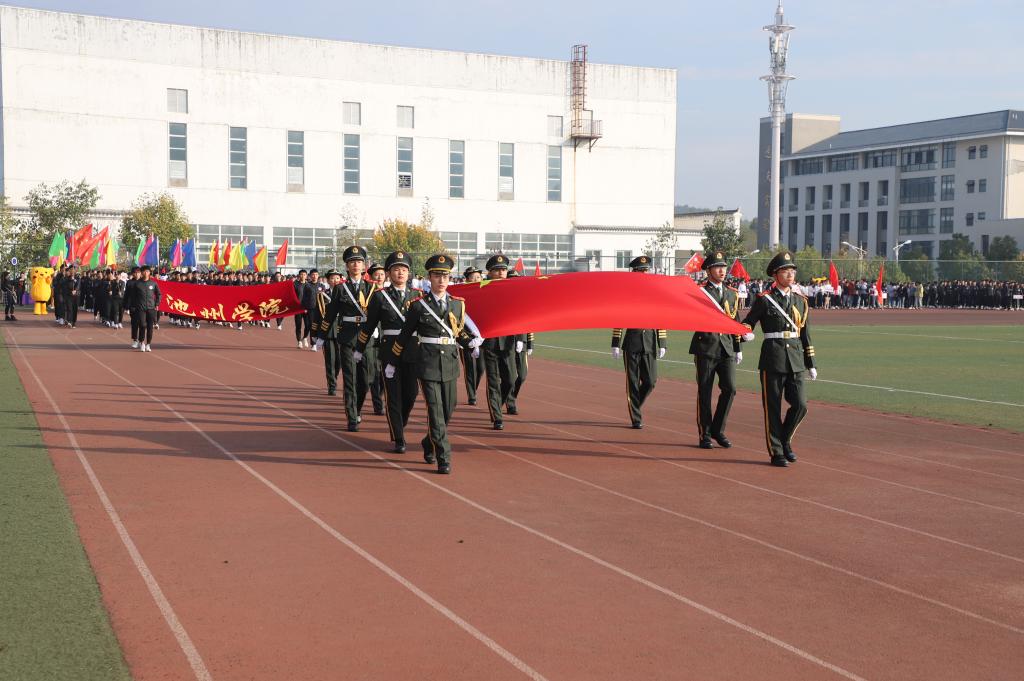 开幕式在庄严的国歌声中拉开帷幕。国旗方阵、志愿者方阵、各二级学院方阵和裁判员方阵伴随着激昂的运动员进行曲依次入场,他们步伐整齐、精神抖擞,展现了广大学子积极向上的精神面貌。