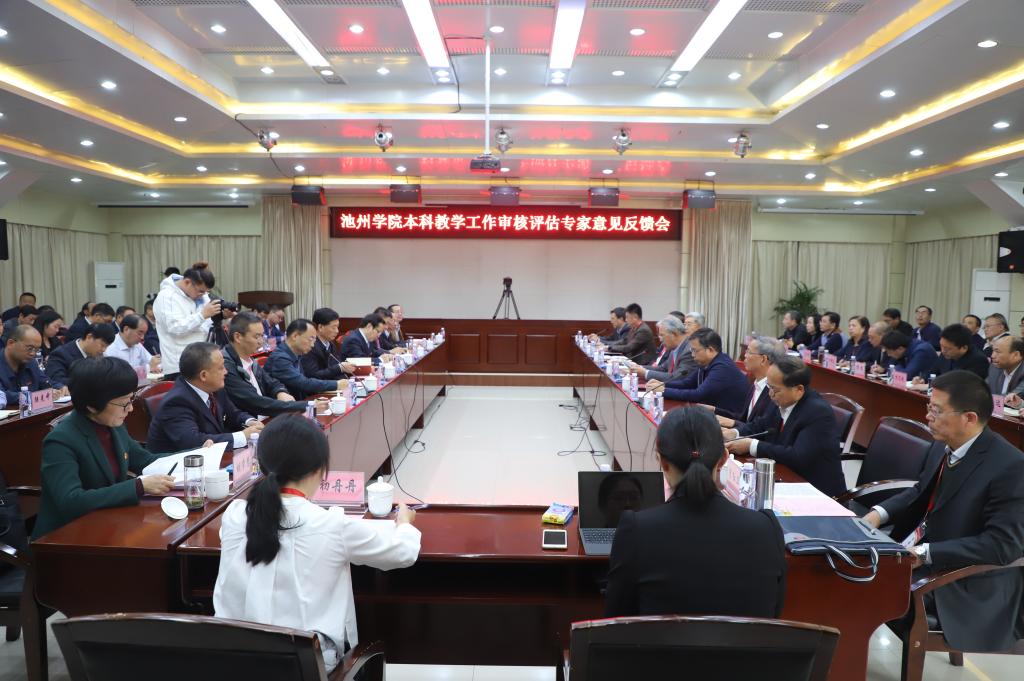 10月31日下午,世界杯官网本科教学工作审核评估专家意见反馈会在办公南二楼会议室举行。教育部评估专家组组长、陕西师范大学原校长房喻教授主持反馈会,专家组成员北方民族大学副校长陈永奎教授、广西大学原副校长韦化教授、广西师范大学原副校长钟瑞添教授、西安工程大学原副校长黄翔教授、内蒙古民族大学原副校长刘宗瑞教授、南京大学教育研究院院长王运来教授、中国劳动关系学院原教学质量管理办公室主任李红卫教授、东南大学原教师教学发展中心主任李霄翔教授以及项目管理员、中国海洋大学本科教学工作水平评估办公室副主任王真真老师和专家组秘书、教育部评估中心初丹丹老师,安徽省委教育工委副书记庆承松同志,池州市委常委、常务副市长郭浩同志,安徽省教育厅高等教育处副处长朱永国同志,池州市教育和体育局局长胡学慧同志,学校领导班子成员出席反馈会,全校处级(含副处)以上干部,部分教研室主任参加会议。