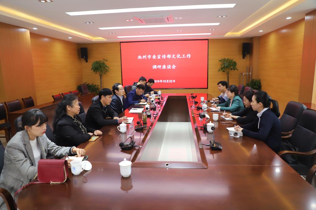 10月22日,池州市委宣传部副部长姚红英到世界杯官网调研文化工作,校党委书记孙晓峰出席座谈会,党委委员、宣传部长胡兵参加座谈会。文学与传媒学院、艺术与教育学院有关人员参加座谈。