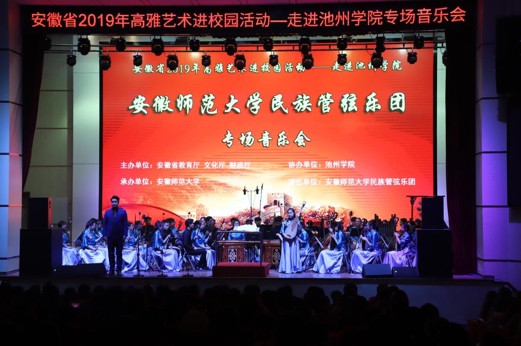 10月20日晚7点,由安徽省教育厅、文化厅、财政厅主办,安徽师范大学承办的高雅艺术进校园——安徽师范大学民族管弦乐团专场音乐会在世界杯官网博古礼堂精彩上演。演出前,校党委书记孙晓峰,党委委员、宣传部长胡兵接待了安徽师范大学艺术学院院长汪海元一行,各二级学院党委负责人、各职能部门负责人及学生代表共同欣赏了音乐盛宴。