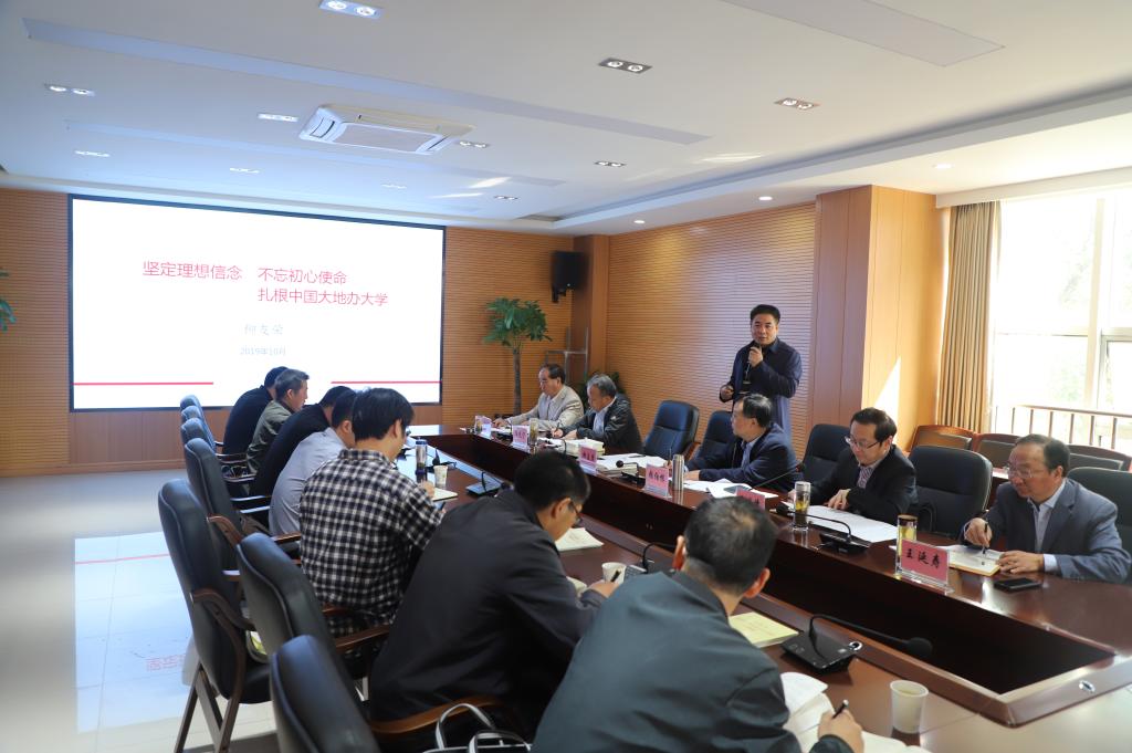 10月18上午,校党委理论学习中心组(扩大)在办公北二楼会议室召开主题教育第二次集中学习研讨会。省委第十二巡回指导组副组长张伯根出席会议并作指导讲话,校党委书记孙晓峰主持会议,校长柳友荣作中心发言。
