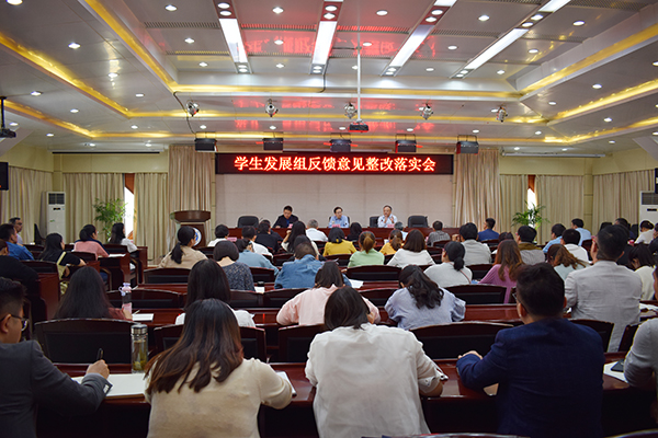 10月10日上午,世界杯官网在行政南二楼会议室召开本科教学工作审核评估预评估学生发展组反馈意见整改落实会。校党委书记孙晓峰、副校长阳光宁出席会议,相关部门负责人,各二级学院党委副书记、全校辅导员和学生处全体人员参加了会议。