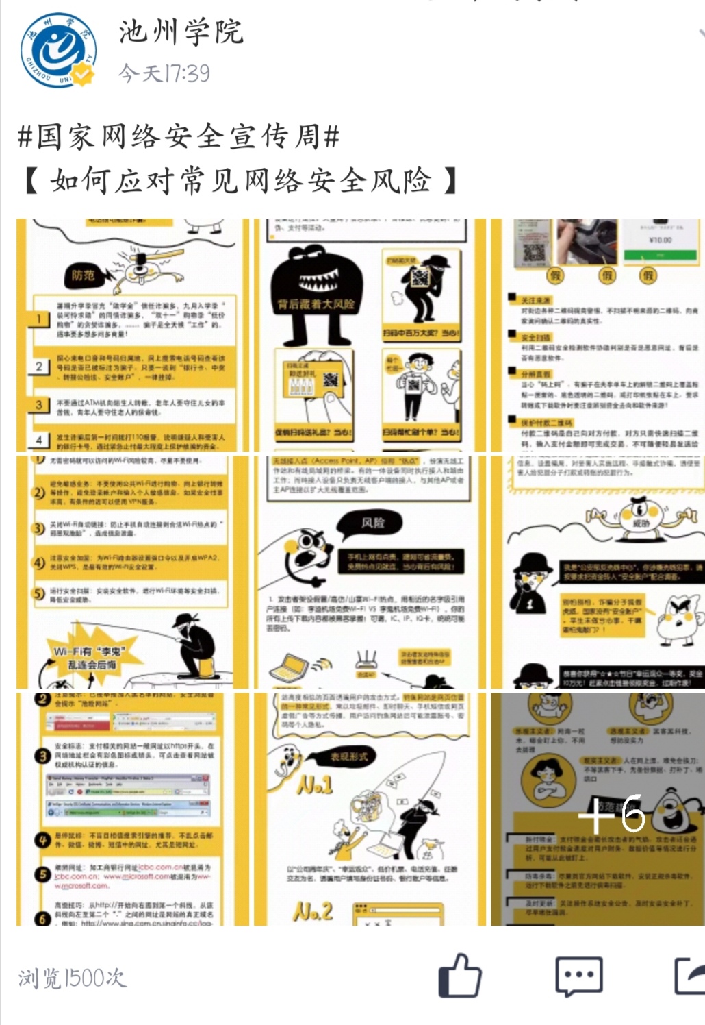 学校利用两微一端平台积极做好线上宣传工作。在2026年国际足联世界杯微信公众号、校园空间号、微博等网络平台上推出关于网络安全防范的相关知识,通过漫画的形式讲述了如何防范电信诈骗、恶意二维码、假冒热点、钓鱼网站等网络隐患,提醒广大师生注意个人信息的保护。
