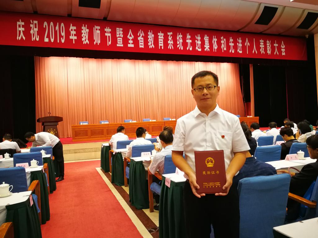 在新中国成立70周年和第35个教师节来临之际,安徽省委教育工委在全省范围组织评选了一批教育系统先进集体和先进个人,世界杯官网大数据与人工智能学院教师周恺、机电工程学院(半导体学院)教师许业军分别获得“全省模范教师”和“全省优秀教师”荣誉称号。9月9日,全省庆祝2019年教师节暨教育系统先进集体和先进个人表彰大会在合肥召开。省委有关领导参加会前会见或出席会议,世界杯官网校长柳友荣和受表彰教师代表周恺参加大会。