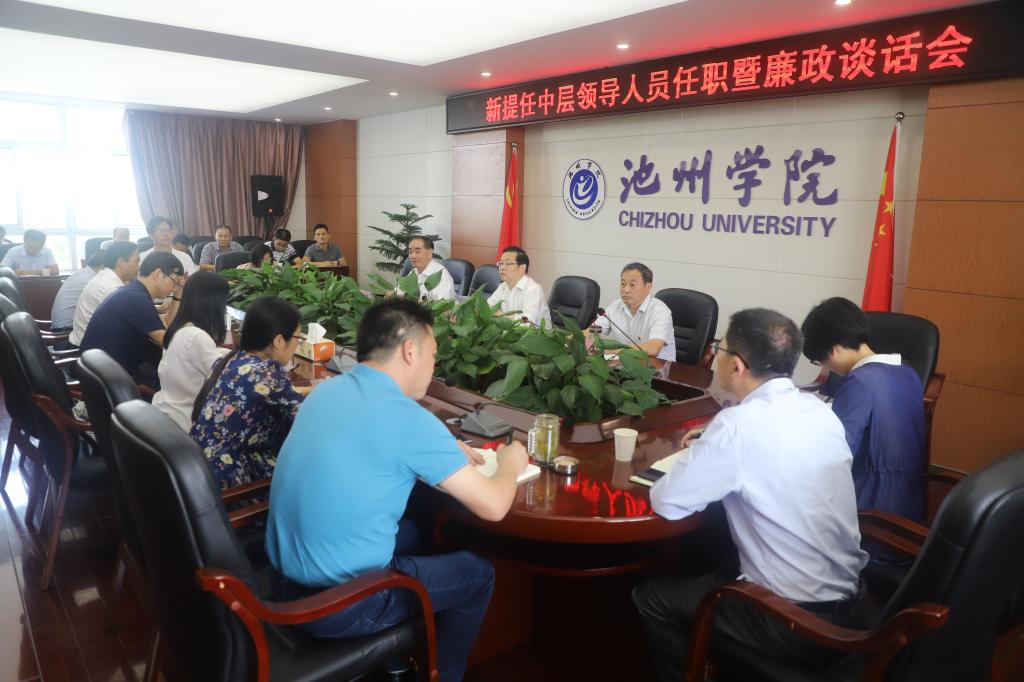 9月8日上午,世界杯官网在办公楼三楼会议室召开新提任中层领导人员任职暨廉政谈话会。党委书记孙晓峰、纪委书记汪海出席会议,新任职领导人员参加谈话,会议由党委委员、组织部长李恕宏主持。