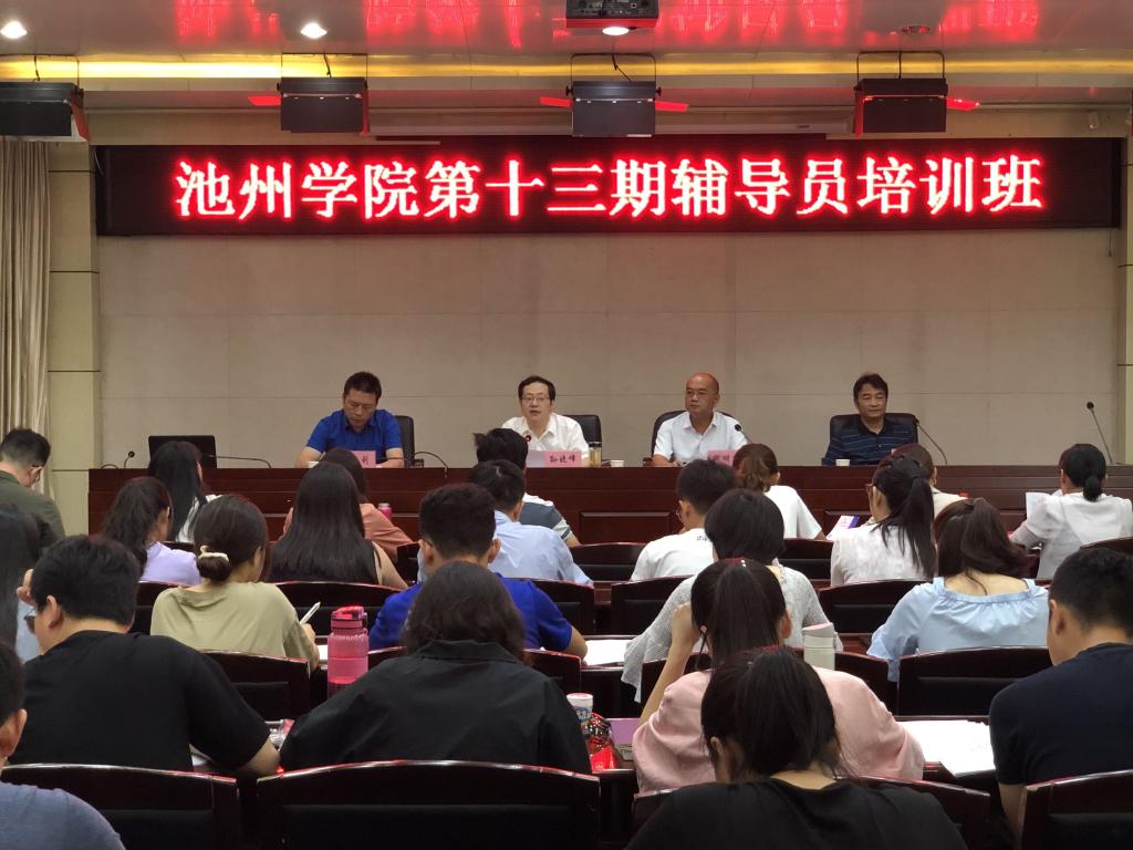 8月27日—29日,世界杯官网在办公南二楼会议室举办第十三期辅导员培训班,党委书记孙晓峰出席开班仪式并讲话,2019年新任辅导员参加培训。