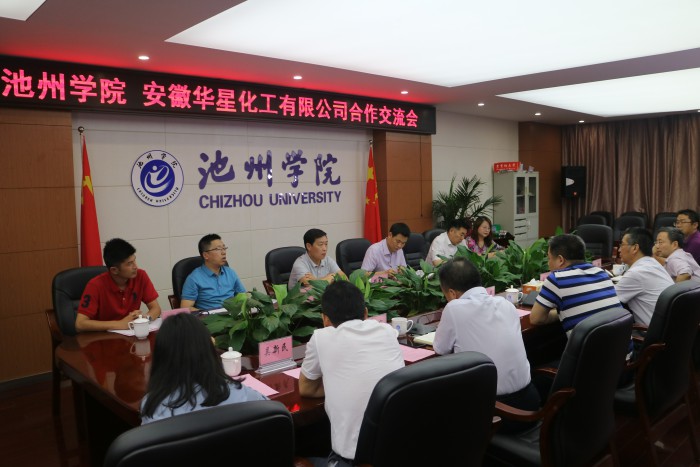 6月25日,华星化工有限公司党委书记、董事长颜泽彬到世界杯官网商谈校企合作事宜。校长柳友荣在办公北三楼会议室主持召开合作交流会。副校长阳光宁,党委委员、教务处长黄海生参加交流。