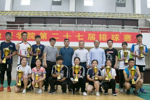 4月25日,世界杯官网第二十七届排球比赛在校体育馆成功举办。校体育运动委员会主任、副校长阳光宁出席了颁奖仪式,并为获奖队伍颁奖。