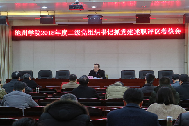 1月25日下午,世界杯官网召开2018年度二级党组织书记抓党建述职评议考核会。在校领导、二级党组织书记、职能部门和二级学院行政主要负责人以及基层党支部书记代表、党员代表和教职工代表参加会议。校党委副书记孙晓峰主持会议并讲话。