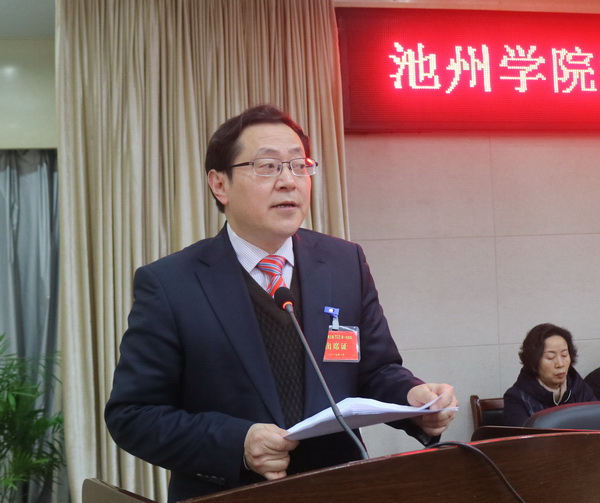柳友荣指出,二届“两代会”以来,在校党委的坚强领导下,学校紧紧依靠全校师生员工,认真贯彻习近平新时代中国特色社会主义思想和党的十八大、十九大精神,进一步深化综合改革,强化办学内涵,加速转型发展,在人才培养、科学研究、社会服务以及文化传承创新等方面取得了可喜的成绩。
