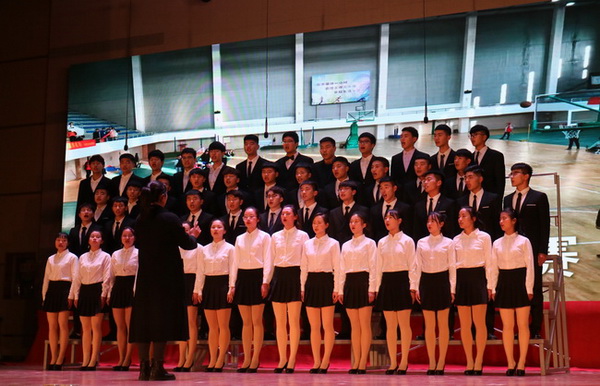 大合唱比赛以“唱响改革主旋律,奋进青春新时代”为主题,共有13支学生代表队参赛。
