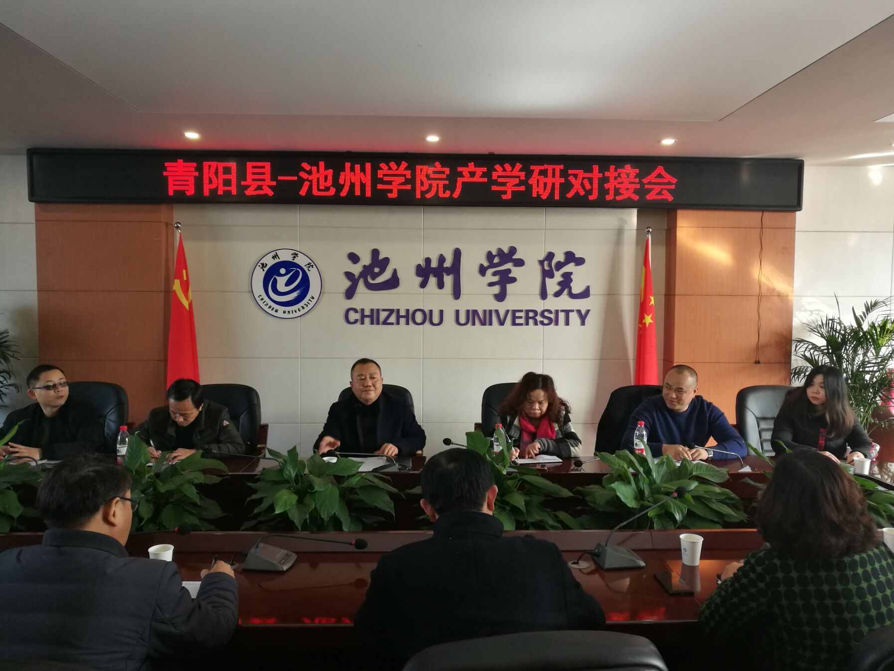 12月18日下午,世界杯官网与青阳县产学研对接会在行政北三楼会议室举行。副校长汪贤才出席会议。青阳县科技局局长章晓山、青阳县人社局副局长凌俊、池州瑞泰汽车配件有限公司总经理朱肖楷,科技处、化学与材料工程学院、机电工程学院院、资源环境学院等主要负责人以及相关专家等二十余人参加会议。