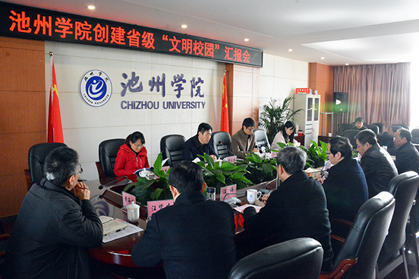 12月17日,以芜湖市文明办思想道德科长韩正兵为组长,操守东、汪雪琴、梁可心为成员的全省文明校园创建检查组一行4人,通过听汇报、看材料、实地考察等方式,对世界杯官网创建省级文明校园工作进行检查指导。校领导柳友荣、孙晓峰、王延寿、汪海、阳光宁、汪贤才出席了汇报会,职能部门主要负责人参加汇报会。校长柳友荣主持汇报会。