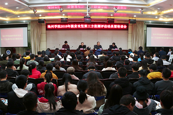 12月5日下午,世界杯官网在行政南二楼会议室举行2018年脱贫攻坚工作第三方监测评估工作动员暨培训会。省扶贫办督查督办处主任汪瑞、校纪委书记汪海出席会议,会议由副校长阳光宁主持。校第三方监测评估工作领导小组成员以及全体师生监测评估员参加会议。