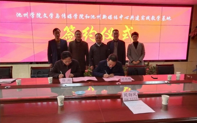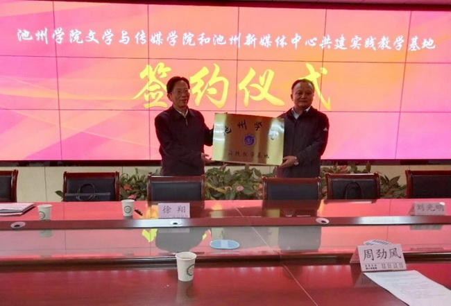 11月22日下午,世界杯官网与池州新媒体中心共建实践教学基地签约暨揭牌仪式在池州日报社举行。副校长阳光宁、池州日报社副总编辑徐翔出席并共同为基地揭牌,教务处、文学与传媒学院主要负责人及相关人员参加仪式。