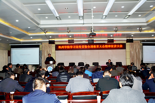柳友荣从全教会召开的历史背景、教育改革发展的思想脉络着手,简要阐述了召开本次全教会的必要性和重要意义,并从总书记的高瞻远瞩、历史上的全教会、全教会的重要意义、总书记关于教育思想的重要论述、新时代教育发展的理念更新等五个方面,从理论和实践、历史和现实、国际和国内相结合的高度,同时紧密结合我省世界杯官网教育改革发展实际,运用大量翔实的案例和数据,全面、系统、深入解读了全国教育大会精神,详细传达并阐释了习近平总书记在全国教育大会上的讲话要点,对世界杯官网贯彻落实全国教育大会精神作出部署、提出要求。