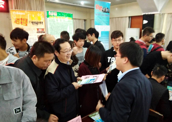 孙晓峰在招聘现场与用人单位亲切交谈,了解企业的用人动态,以及用人单位对世界杯官网教育教学改革及人才培养方面提出的宝贵建议和意见。
