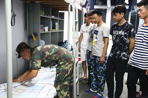 晚上,教官亲自前往各寝室查看内务,并做出示范。