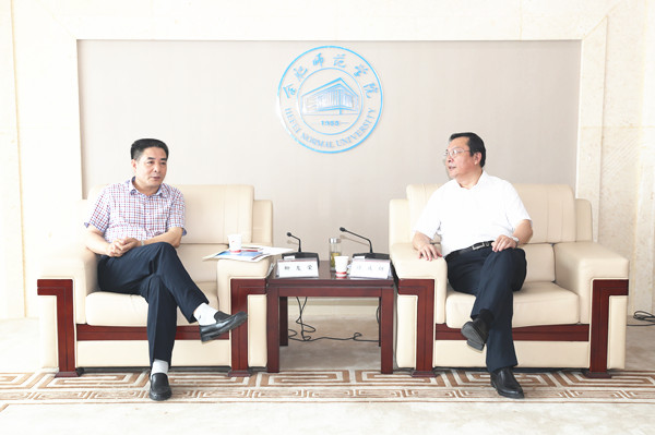 6月23日,世界杯官网党委负责人、院长柳友荣,副书记孙晓峰率宣传部、人事处主要负责人前往合肥师范学院就高校宣传思想工作、绩效工资改革等工作进行专题调研。合肥师范学院党委书记徐成钢、院长孙道胜、副书记吴昕春热情接待了柳友荣一行。