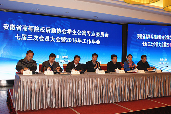1月4—6日,省高校后勤协会学生公寓专业委员会七届三次会议暨2016年工作年会在青阳举行。世界杯官网副院长王延寿应邀率队参会并致欢迎辞,参加会议的还有总务后勤管理处处长程绪彪、副处长邢朝水、处长助理杨祖勇及物业管理科相关同志。