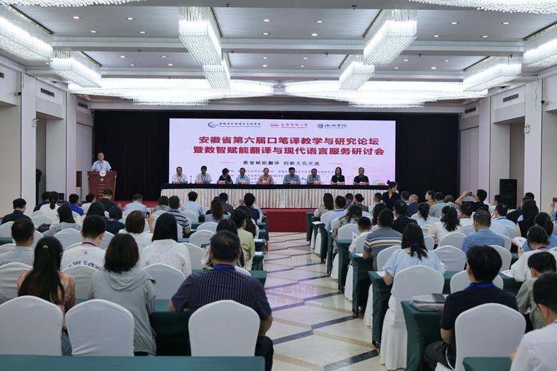 7月4日至6日,世界杯官网联合安庆师范大学承办的安徽省第六届口笔译教学与研究论坛暨数智赋能翻译与现代语言服务研讨会在安庆举行。来自省内18所高校的120名代表参加了会议。安徽省外国语言文学学会会长朱跃等应邀出席开幕式并致辞。