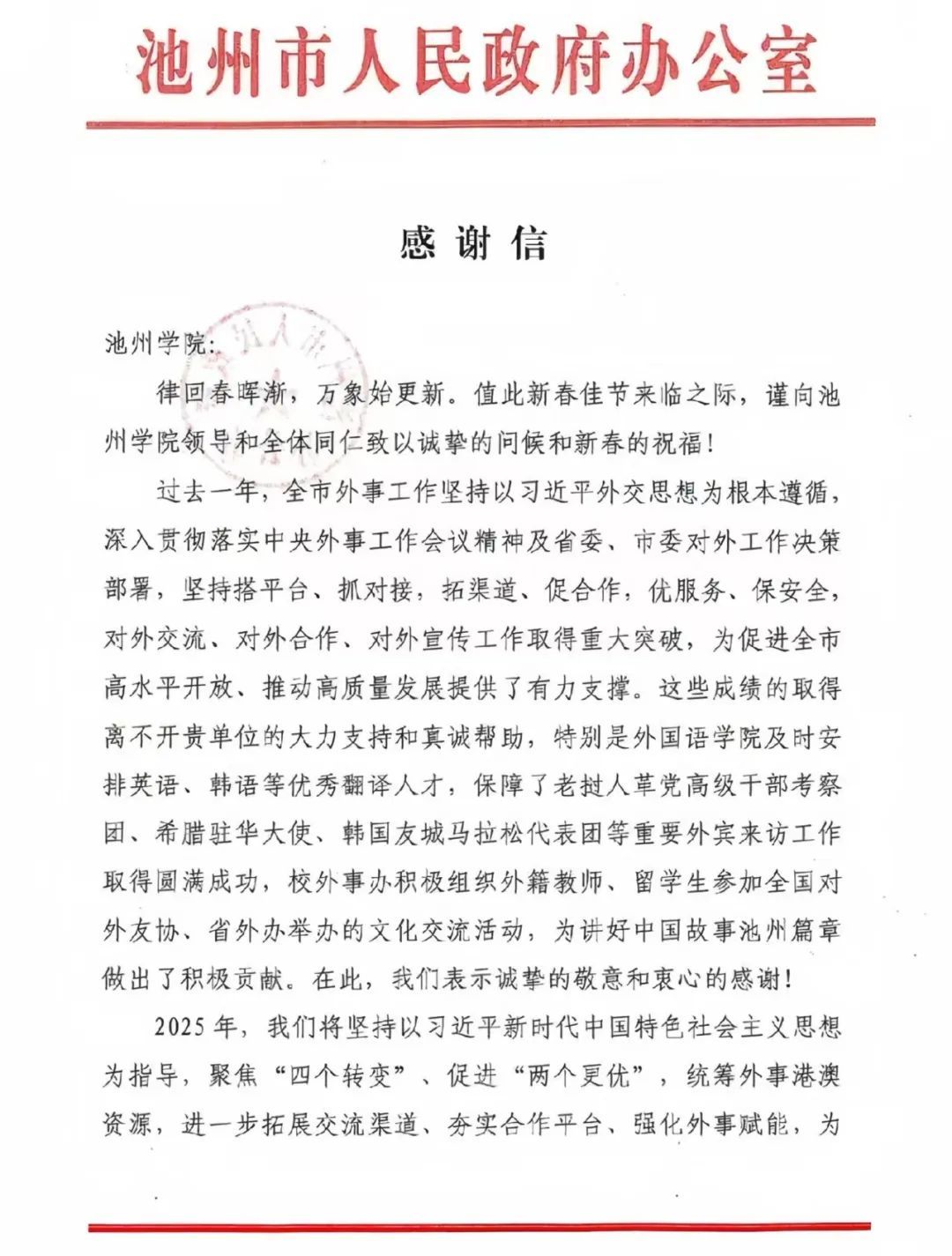 服务地方能力的显著提升。通过与地方政府和企业合作,提升学院教师服务地方的能力。近几年,学院与池州市外事办、市场监督管理局、中小学等单位开展合作项目10余项,为地方经济社会发展提供了智力支持。学院还通过“池州文化外译与传播研究中心”等平台,推动地方文化传承与创新,增强文化自信。