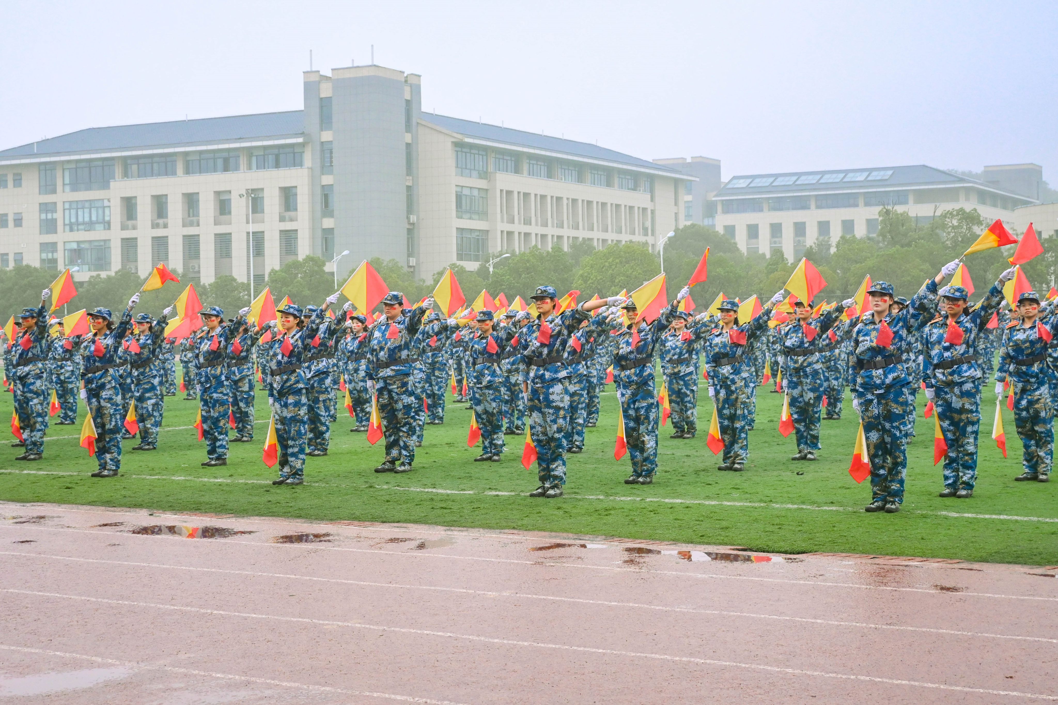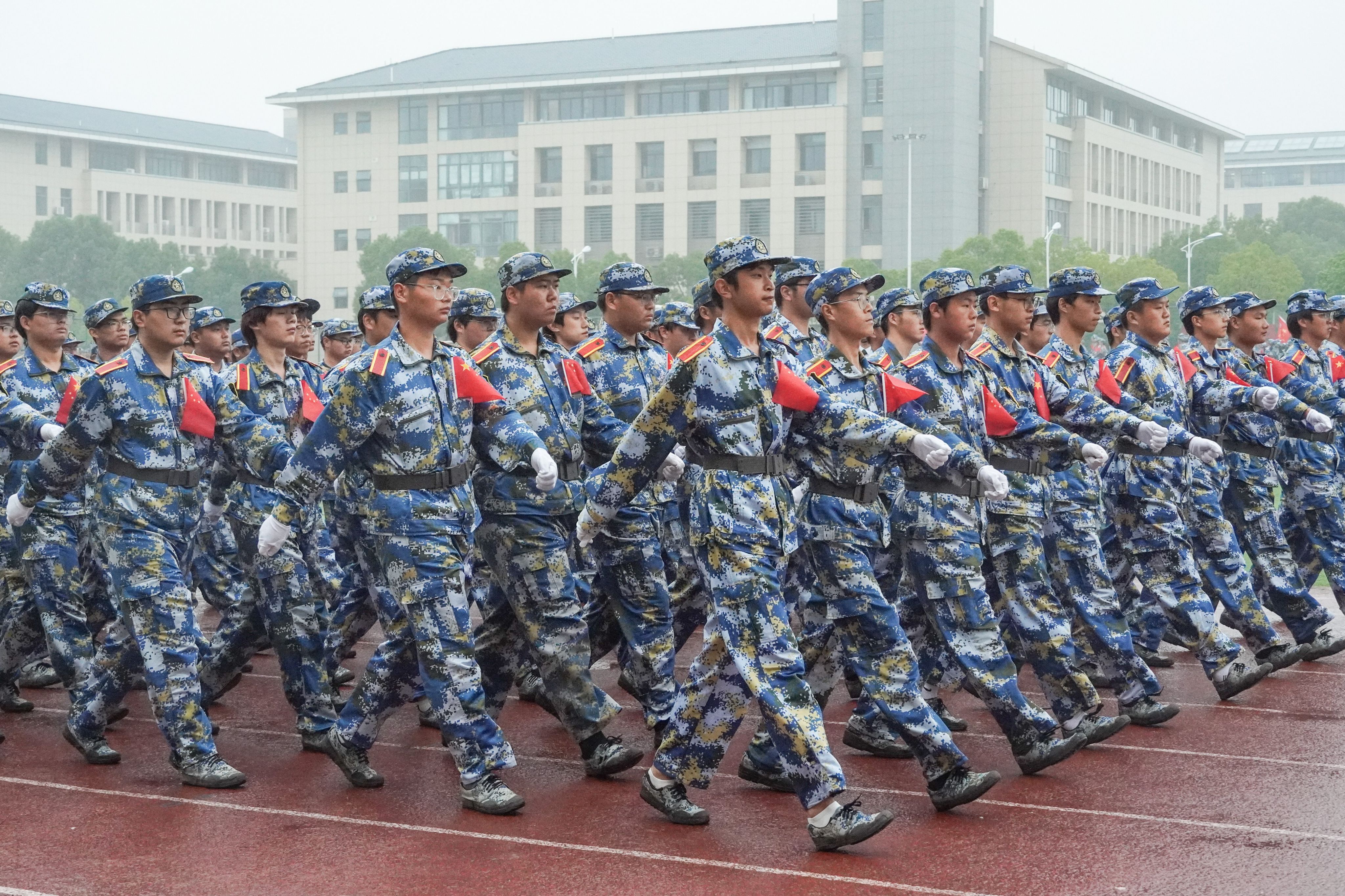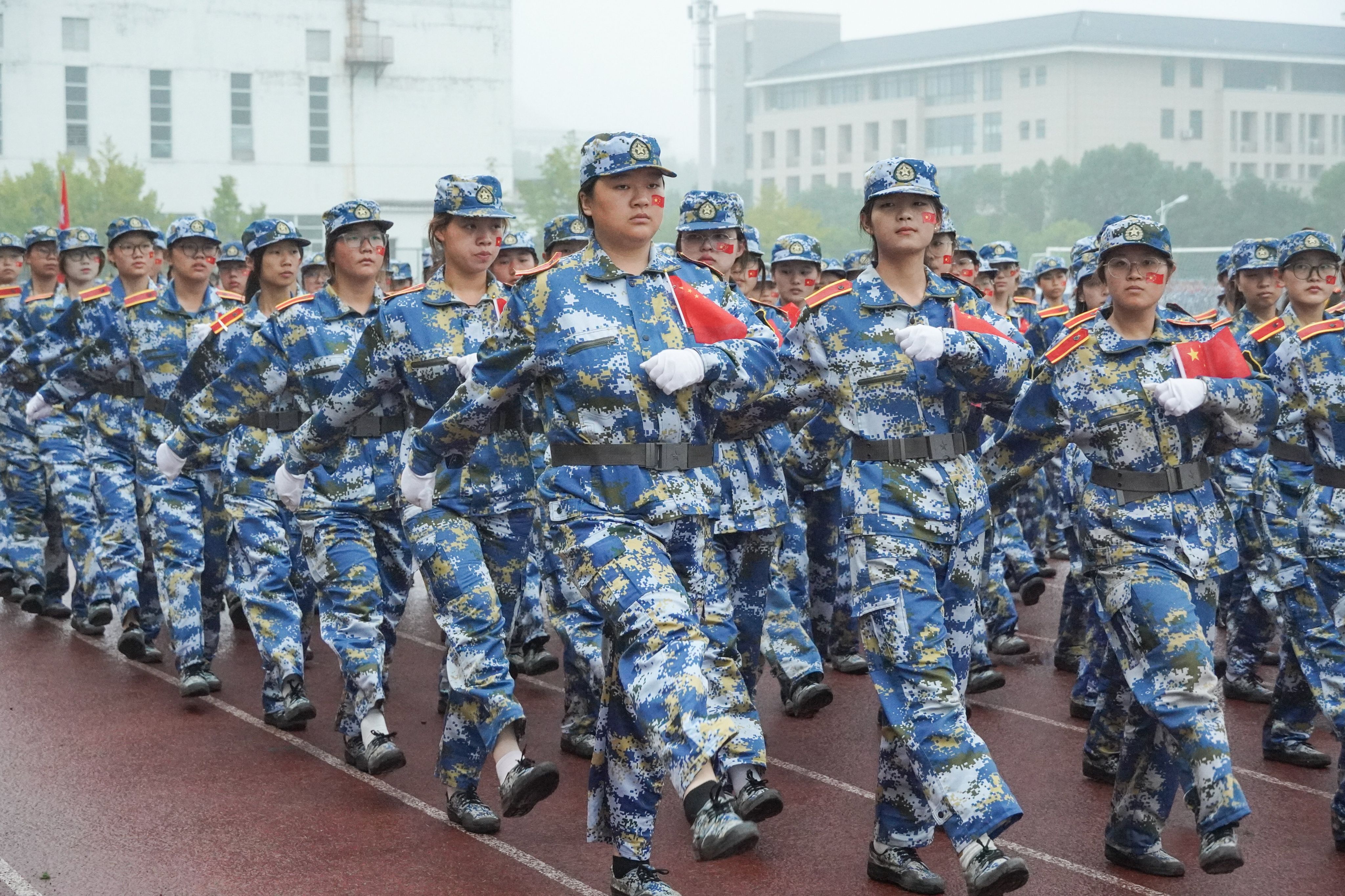 军训汇报表演在庄严的分列式进行曲中拉开序幕,各连队步伐铿锵、口号嘹亮,依次经过主席台接受检阅,展现出新时代学子的蓬勃朝气。