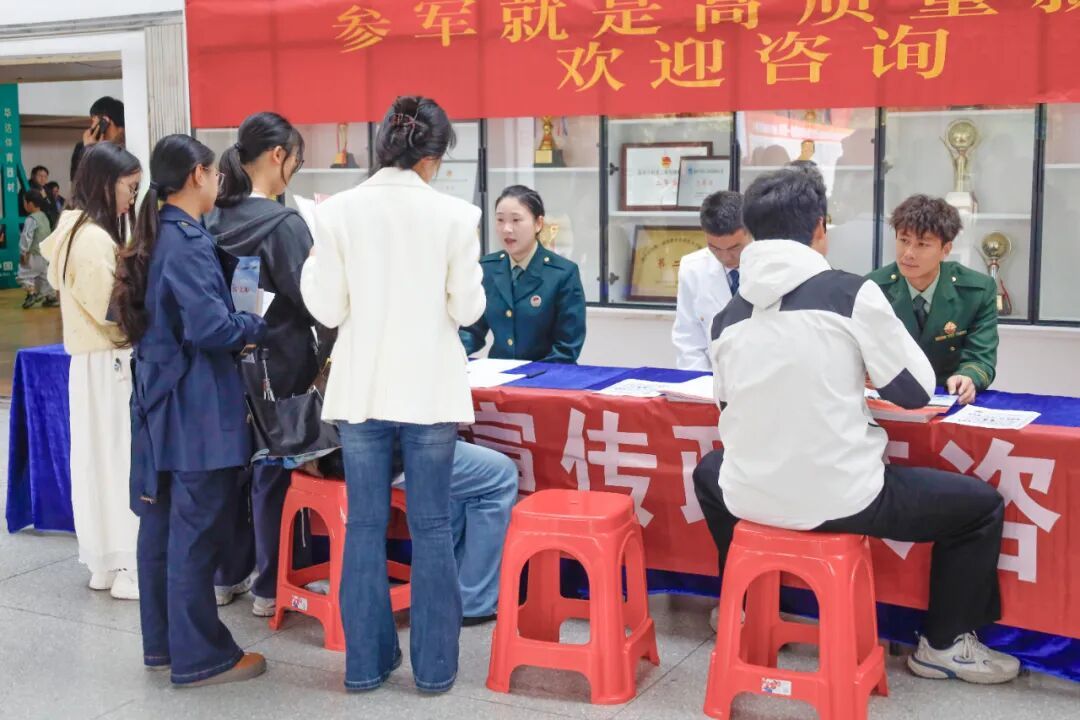 双选会筹备期间,学校多措并举开展“访企拓岗”,与各地人社部门积极对接,整合就业岗位资源,精准对接就业供需,为毕业生搭建优质求职平台,为企业提供优秀人才。安庆人社局、青阳县人社局、铜陵市义安区人社局、阜南县人社局、芜湖市湾沚区人才集团等组团参加本次双选会。为激励广大有志青年踊跃报名参军报国,双选会现场还设置“征兵咨询处”,现场向同学们分享介绍大学生征兵入伍政策等。当日下午还举办了20余场招聘宣讲、笔试、面试活动,为毕业生就业打通最后一公里。