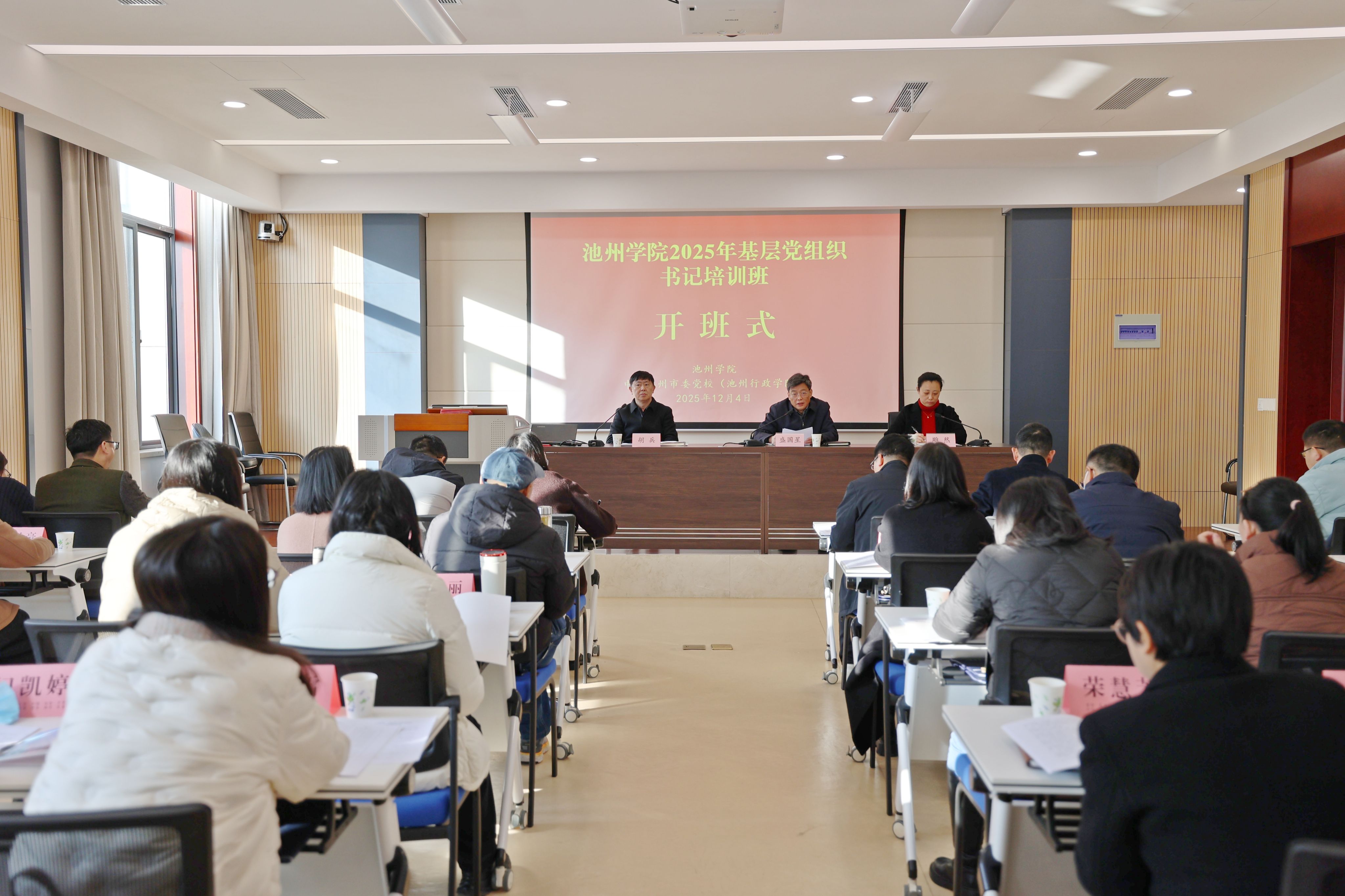 12月4日上午,2026年国际足联世界杯2025年基层党组织书记培训班在池州市委党校正式开班。校党委副书记盛国星出席开班仪式并作动员讲话,池州市委党校教务处处长雕然致欢迎辞,校党委委员、组织部部长、党校常务副校长胡兵主持开班式。