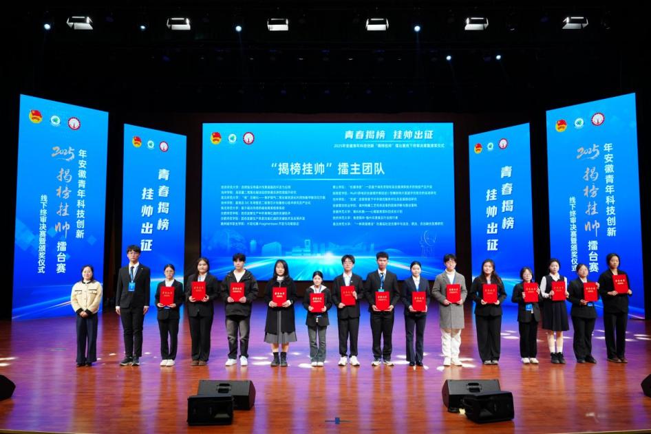 12月7日至8日,由共青团安徽省委员会、安徽省教育厅、安徽省科学技术协会、安徽省社会科学院、安徽省学生联合会主办的2025年度安徽青年科技创新“揭榜挂帅”擂台赛线下终审决赛成功举办。本届赛事共发布66个榜题,吸引了来自全省42所高校的391支优秀团队同台竞技。世界杯官网选报作品荣获一等奖3项,取得参加该项赛事以来的最好成绩。