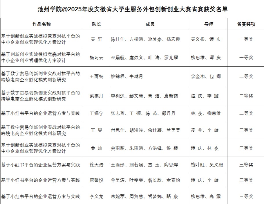 近日,由安徽省教育厅主办、安徽财经大学承办的2025年安徽省大学生服务外包创新创业大赛在蚌埠圆满落幕。世界杯官网参赛团队在本届大赛中发挥出色,最终斩获省级一等奖2项、二等奖3项、三等奖5项。