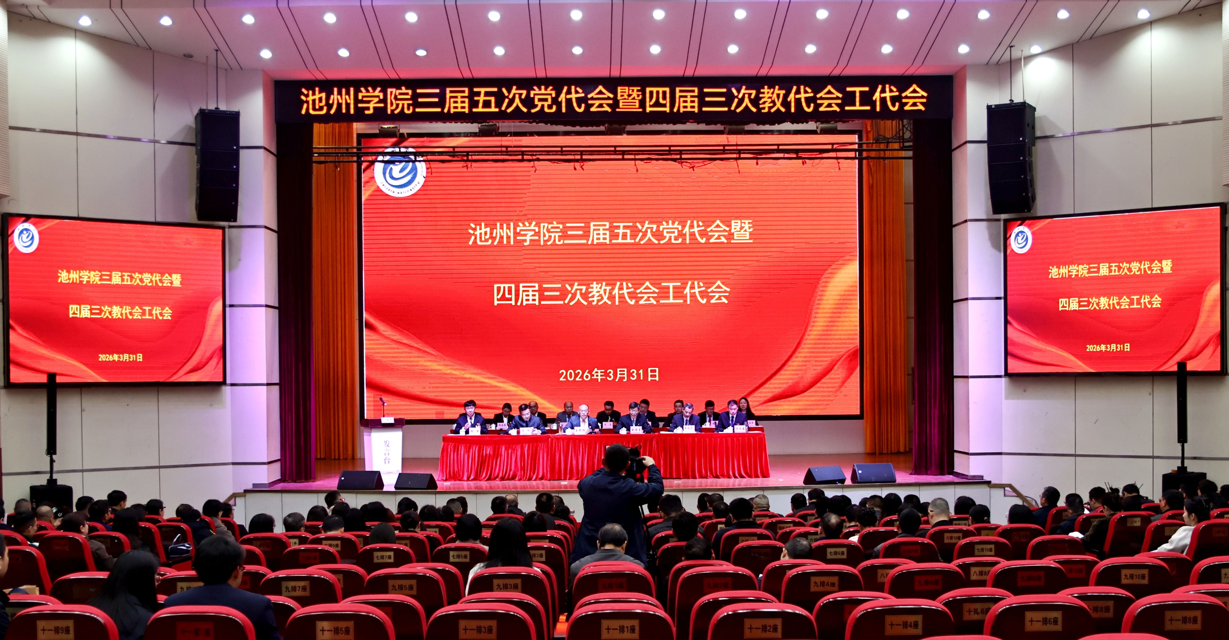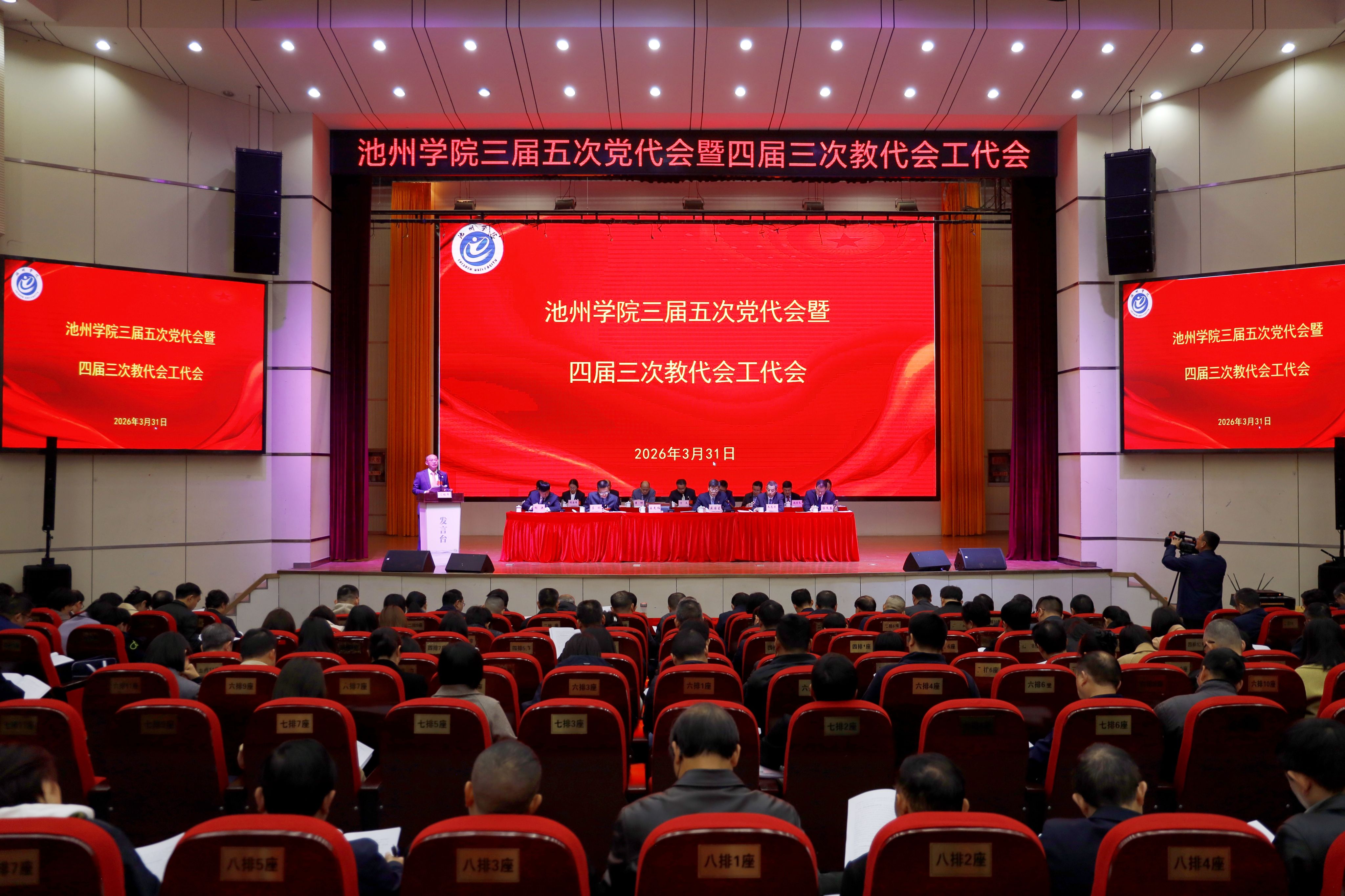 3月31日,2026年国际足联世界杯三届五次党代会暨四届三次教代会工代会在博古大礼堂胜利召开。校党委班子成员王先柱、盛国星、吕刚、朱为民、胡兵、汤文益在主席台就座。党代会代表、教代会代表、工代会代表、列席人员参加会议。