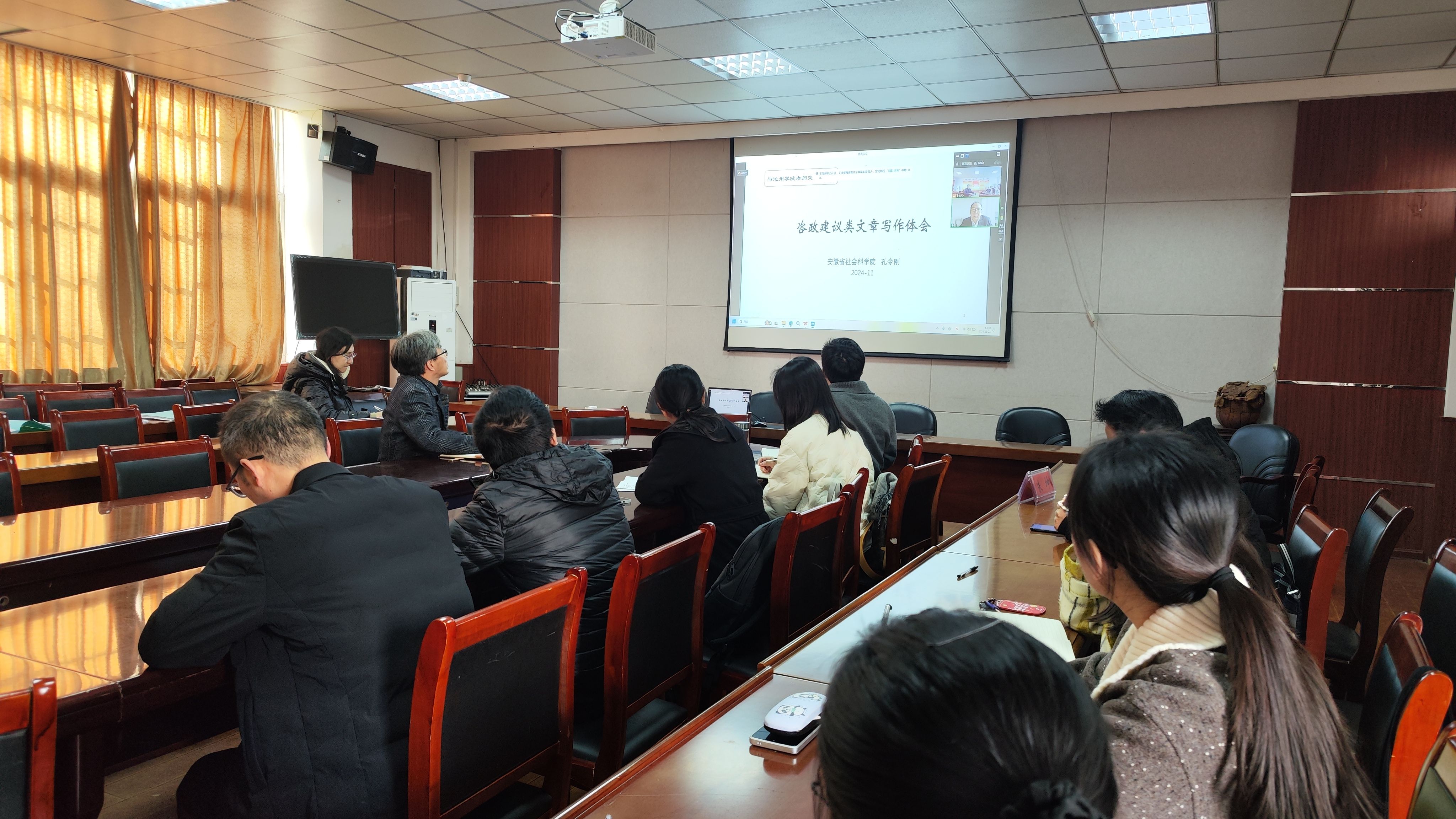 为提升商学院(法学院)教师咨政建议类文章写作能力,促进学术与社会服务融合,11月21日下午,商学院(法学院)通过线上形式开展秋浦讲堂第四期讲座,邀请安徽省社科院孔令刚研究员进行专题讲授。讲座由副院长吴义根主持,众多博士及教授齐聚聆听。