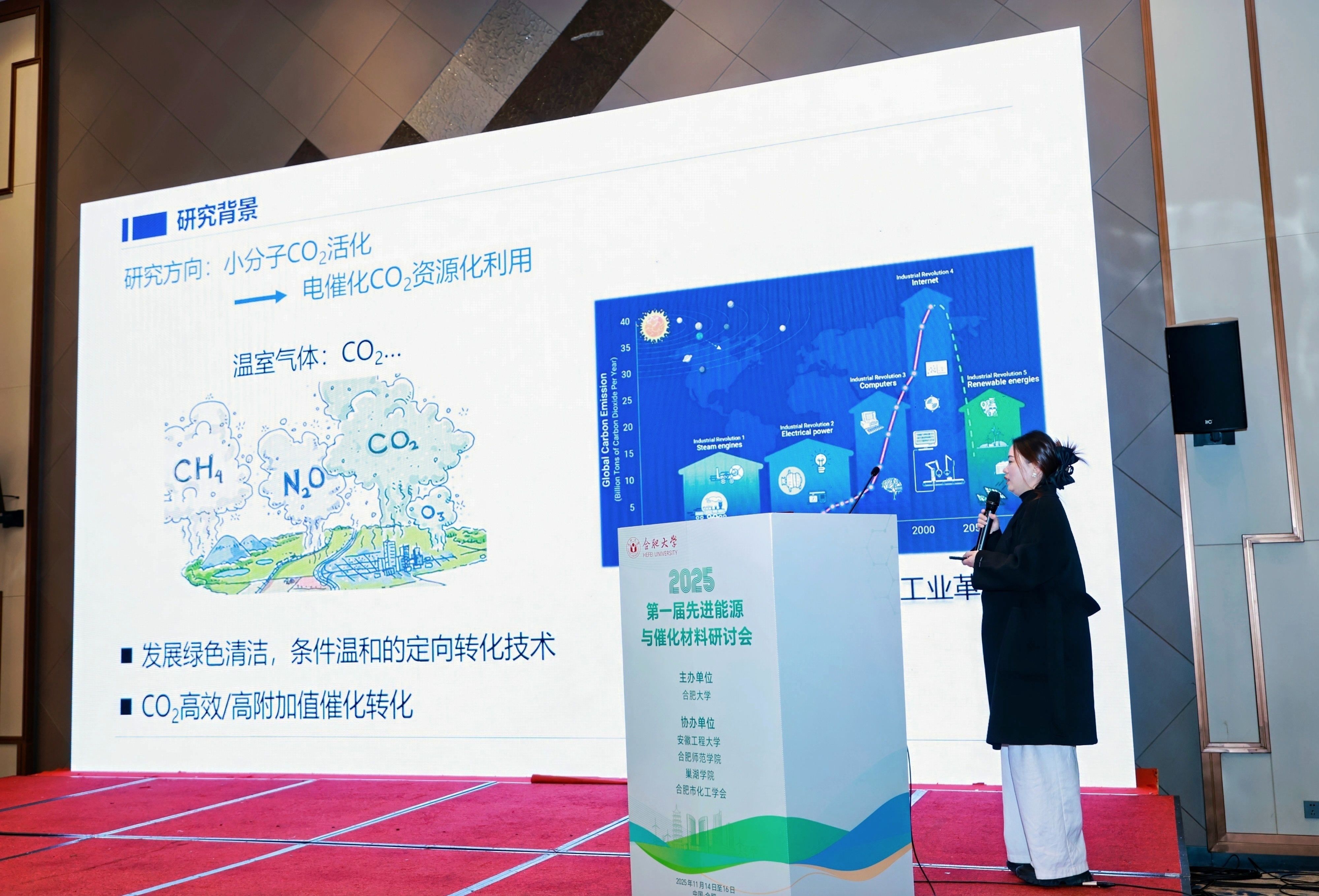 世界杯官网材料与环境工程学院王敏、王相宇教师在研讨会上分别作题为“银单原子合金上中间体内迁移增强CO2电还原为多碳产物”和“p区金属硒化物的构建及其CO2电还原性能研究”的口头报告,并与参会专家学者进行了深入学术交流和探讨。