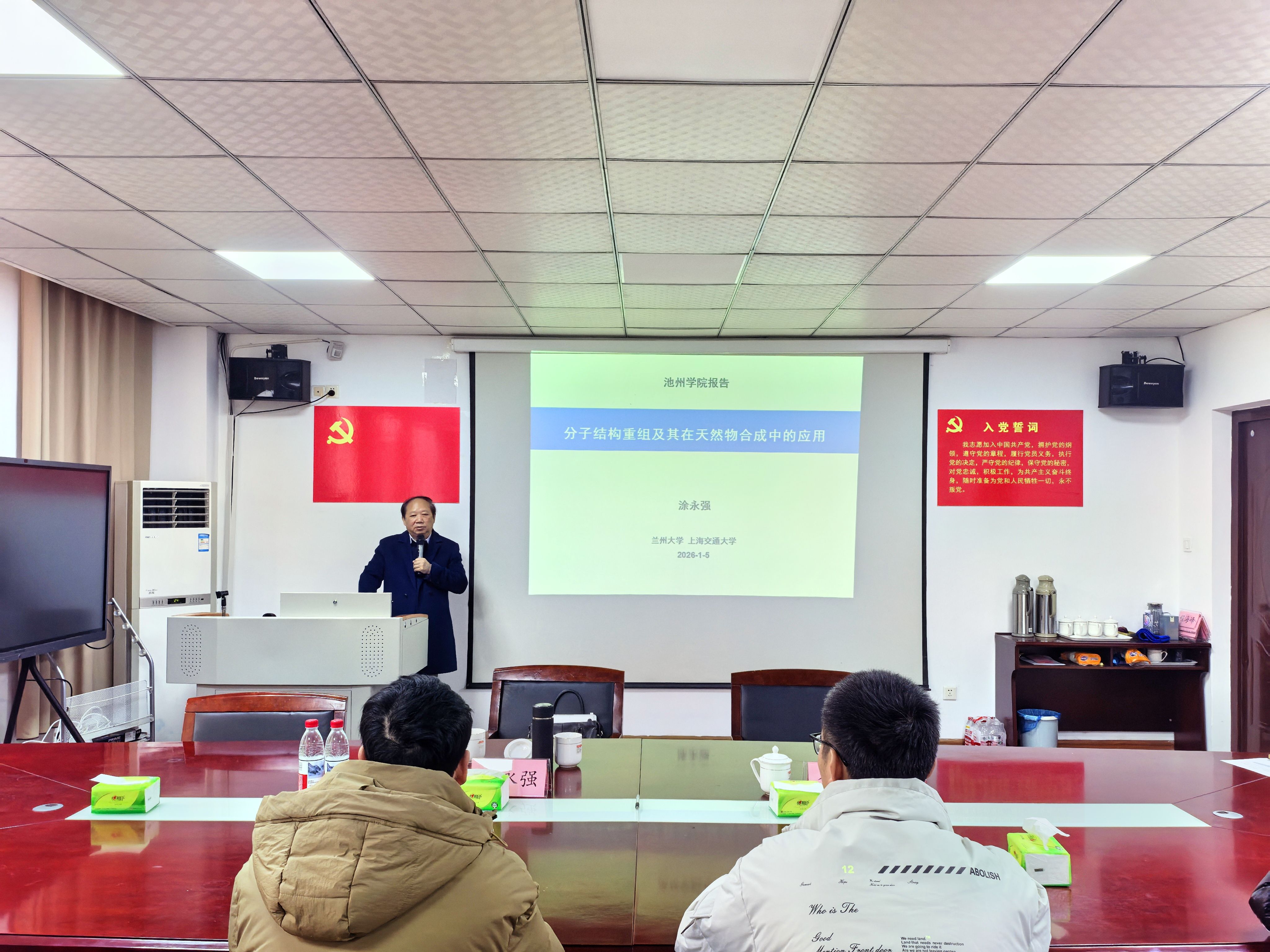 1月5日上午,世界杯官网材料与环境工程学院“党建引领发展 学术促进成长”学术大讲堂在逸夫南楼会议室举行。兰州大学与上海交通大学双聘教授涂永强院士应邀作题为“分子结构重组及其多环萜类天然产物合成”的学术讲座。讲座由校党委委员、副院长李明玲主持。