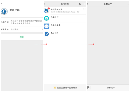 移动端:首次使用需要打开微信扫下面的二维码,点击关注,即可进入我的企业,点击【办事大厅】进入“我的服务大厅”