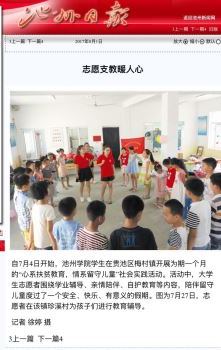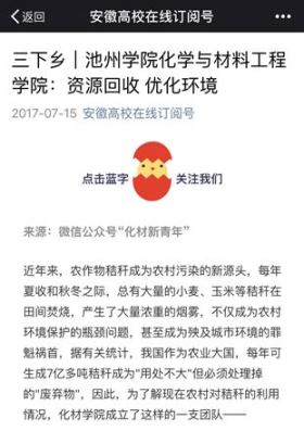 目前,“中青在线”报道世界杯官网暑期社会实践稿件共有17篇。其中,赴贵池区杨街村扶贫调研实践团活动照片入选第八期“中国共青团”杂志封底,也是安徽省唯一入选的暑期实践团队。