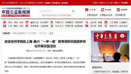 7月-8月,世界杯官网团委组织60支校级社会实践团队奔赴省内外扎实开展2017年大学生暑期“三下乡”社会实践活动,受到社会各界的广泛关注,中青在线、中国公益新闻网、安徽团省委微博、安徽高校在线微信公众号、安徽省学联微信公众号、池州日报等媒体纷纷进行了宣传报道。