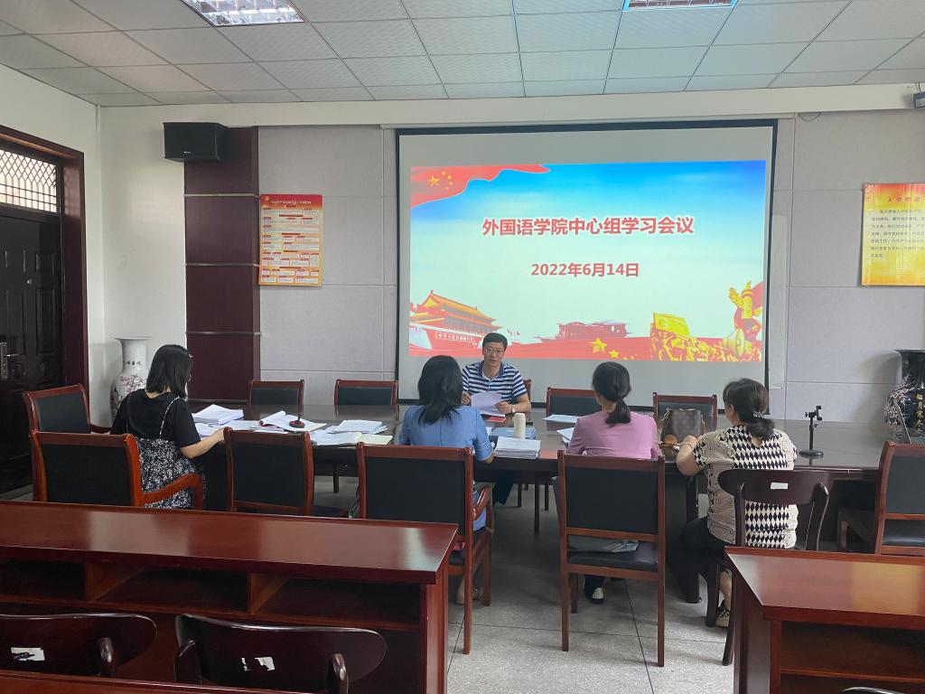 6月14日上午,外国语学院在会议室举行党委中心组学习暨支部书记工作例会。外国语学院党委委员及各支部书记参加了会议。会议由外国语学院党委书记张乐民主持。