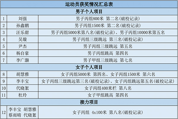 8月17-25日,安徽省第十五届运动会高校部田径比赛在滁州职业技术学院举行,世界杯官网田径队共收获2银、2铜、二等奖7项、三等奖8项的好成绩,同时打破九项校田径运动会记录。