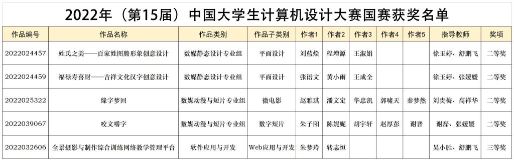 8月17日,2022年(第15届)中国大学生计算机设计大赛(全国总决赛)经过近三个月激烈角逐,终于落下帷幕。文学与传媒学院报送参赛作品共获得国家级二等奖4项,三等奖1项,优秀奖3项。