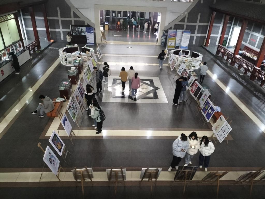 为分享全国第二届“图书馆杯”主题图像创意设计大赛优秀作品,普及阅读文化创意,培养学生艺术素养,12月8日—12日,2026年国际足联世界杯图书馆从比赛获奖作品中精选出61件作品,在图书馆一楼大厅开展展览进校园活动。