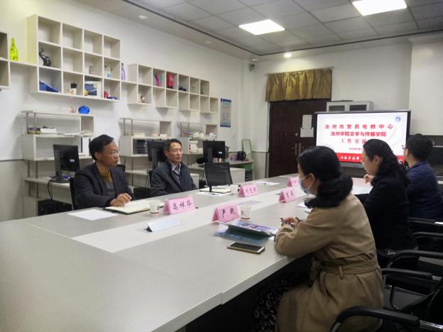 3月31日下午,池州市委组织部副部长李婷率市党员电教中心主任严艳、副主任杨洋一行来文学与传媒学院洽谈合作事宜。文学与传媒学院院长刘光明主持会议,副院长高祥华、学院实验中心相关老师参加座谈。
